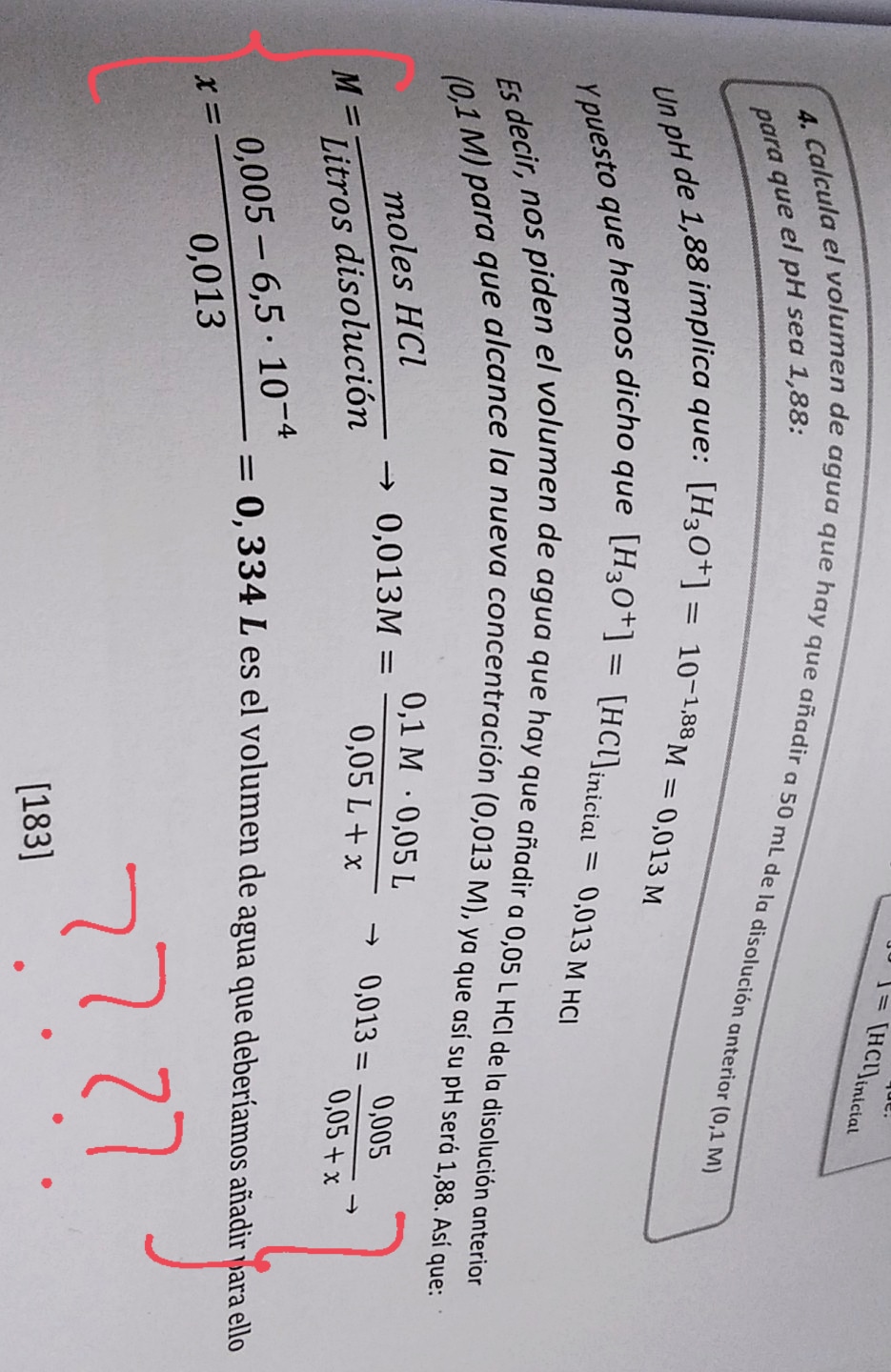 Hola, me podría decir que está mal de este ejercicio? Yo primero he realizado el apartado b. El enunciado es este: a) Calcula los gramos de ácido cloroso