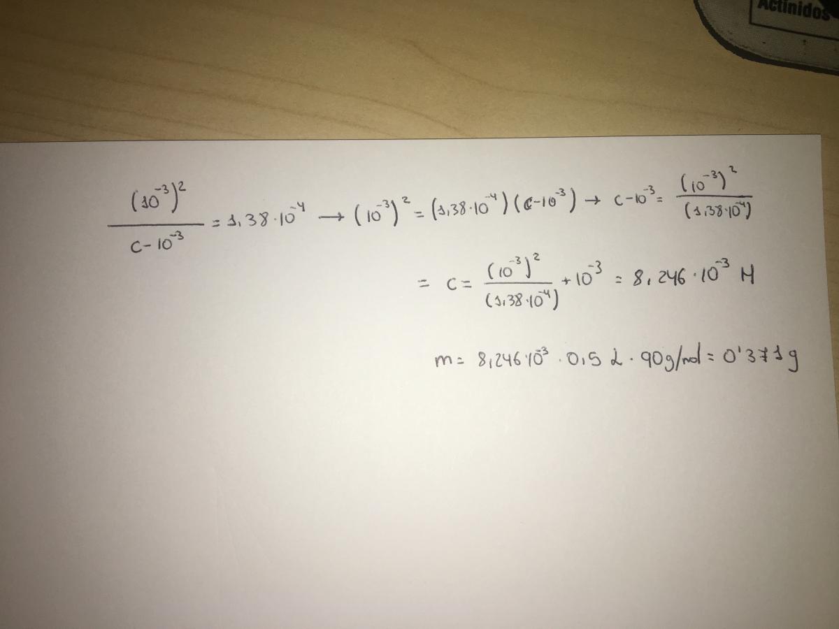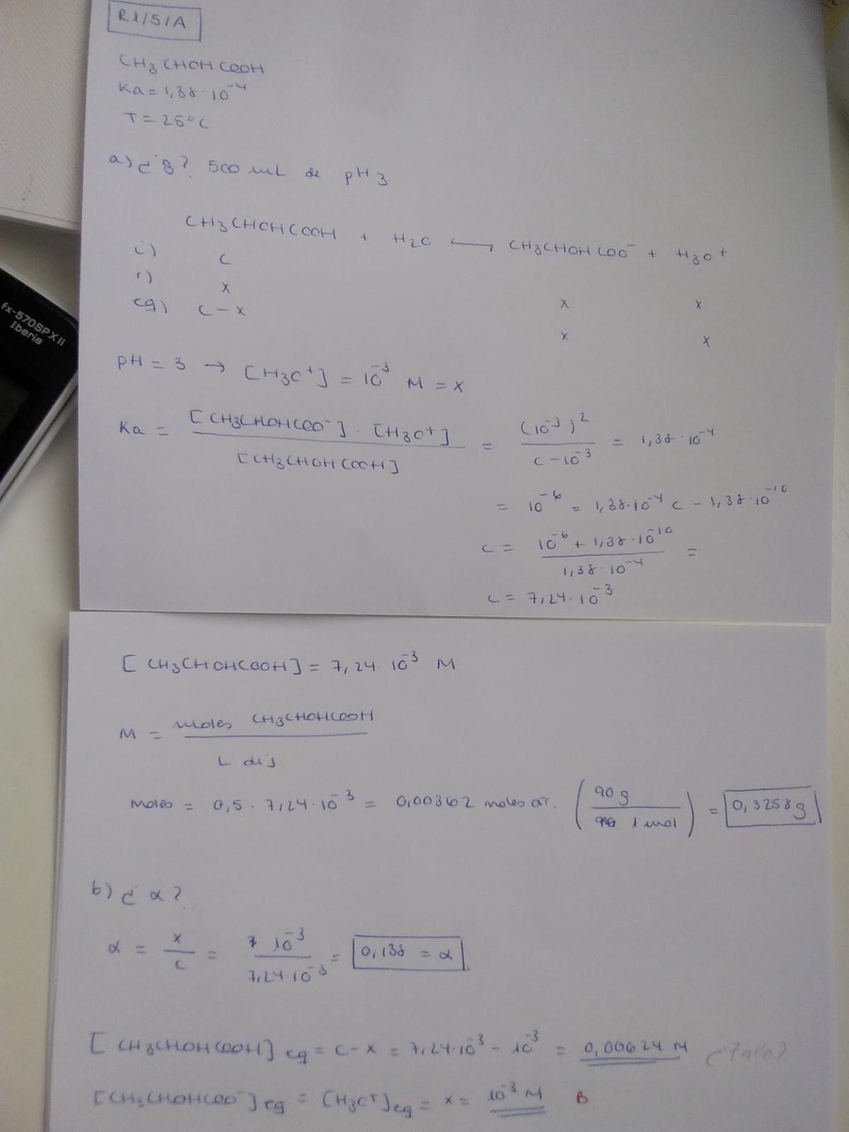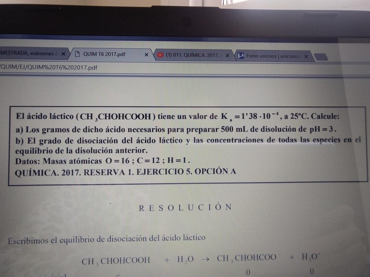 Lo que no me da igual es: el apartado a) y la concentración en equilibrio de CH3CHOHCOOH