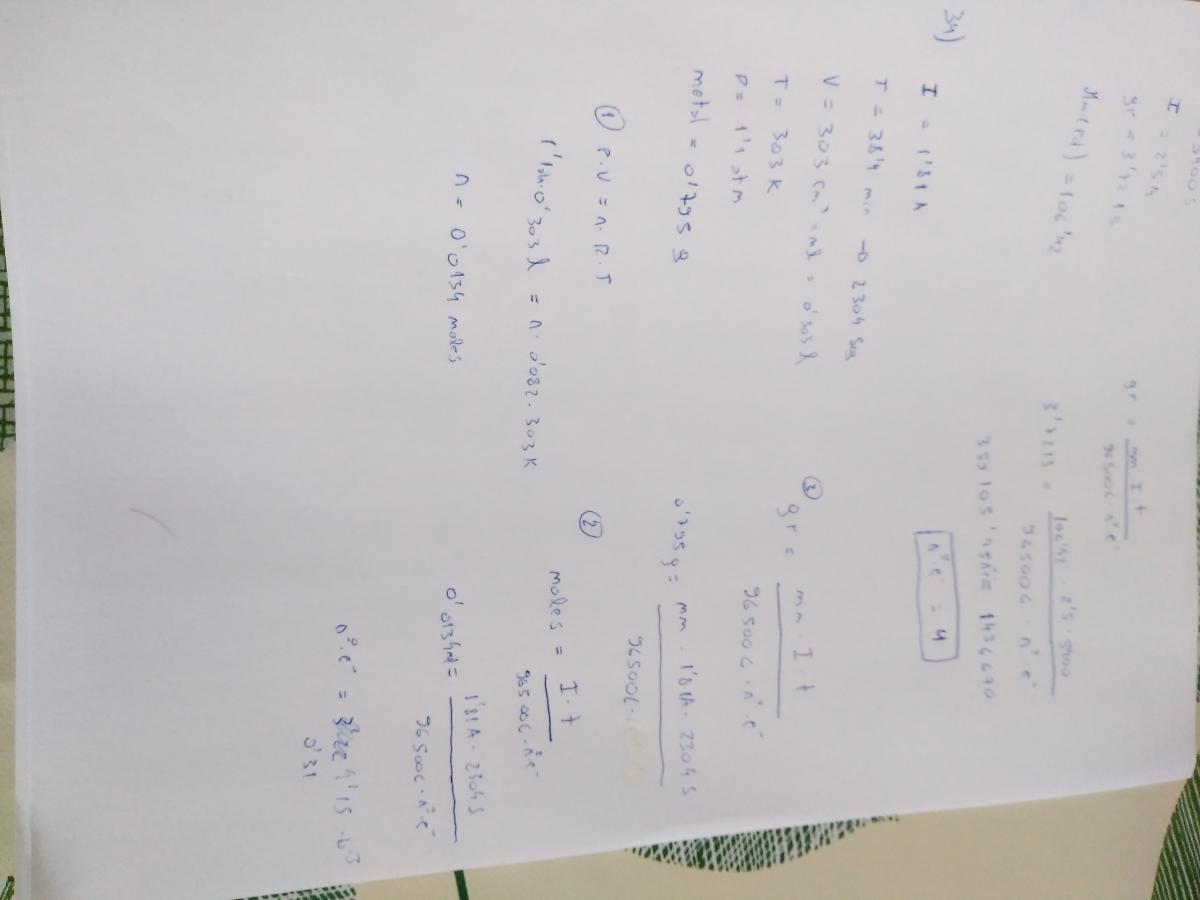 debes calcular los moles de electrones que han pasado en la corriente, y luego los moles de cloro que se te han generado, comparas ambos valores, y la diferencia son los moles de metal que se te habrán reducido.