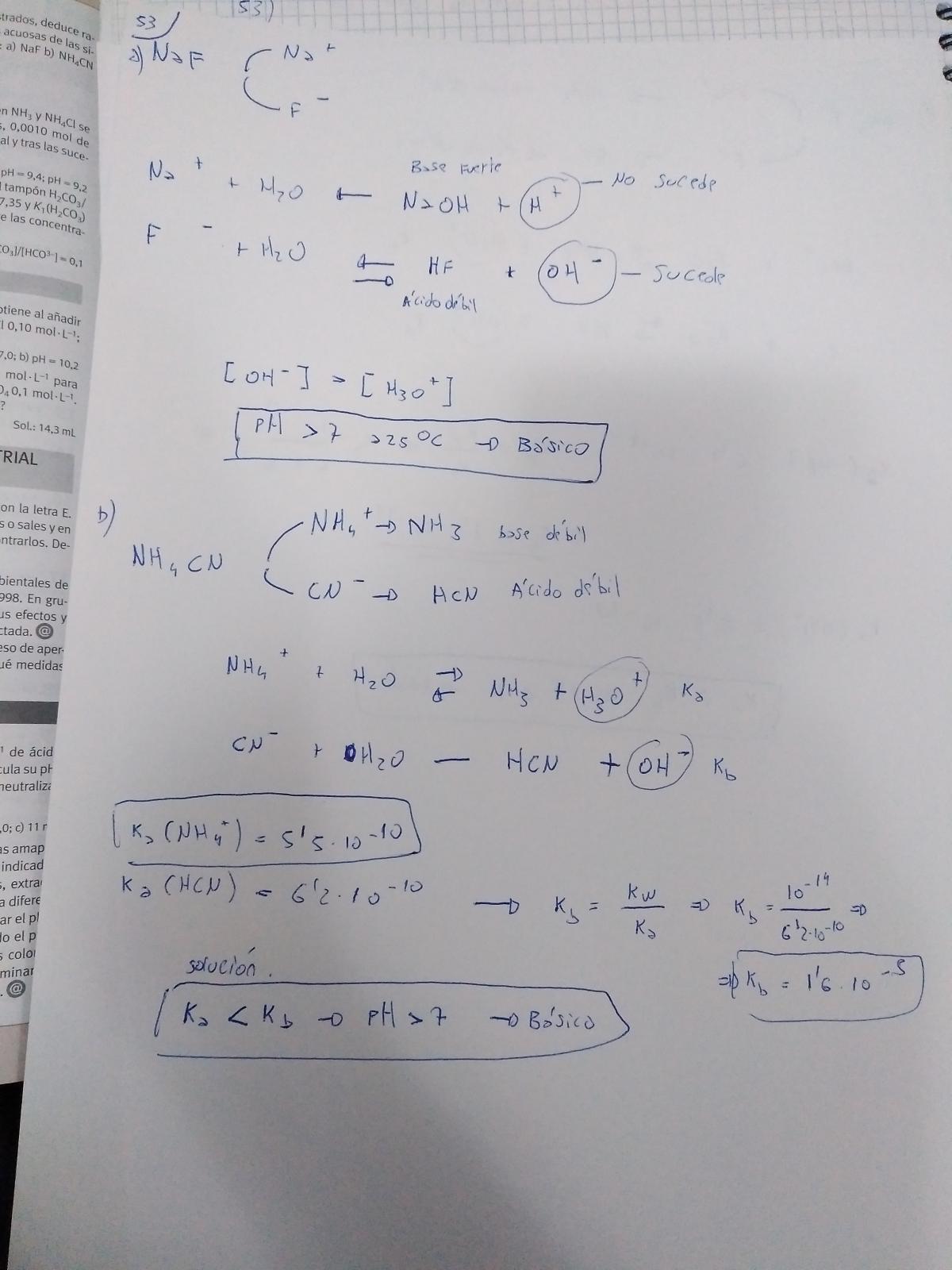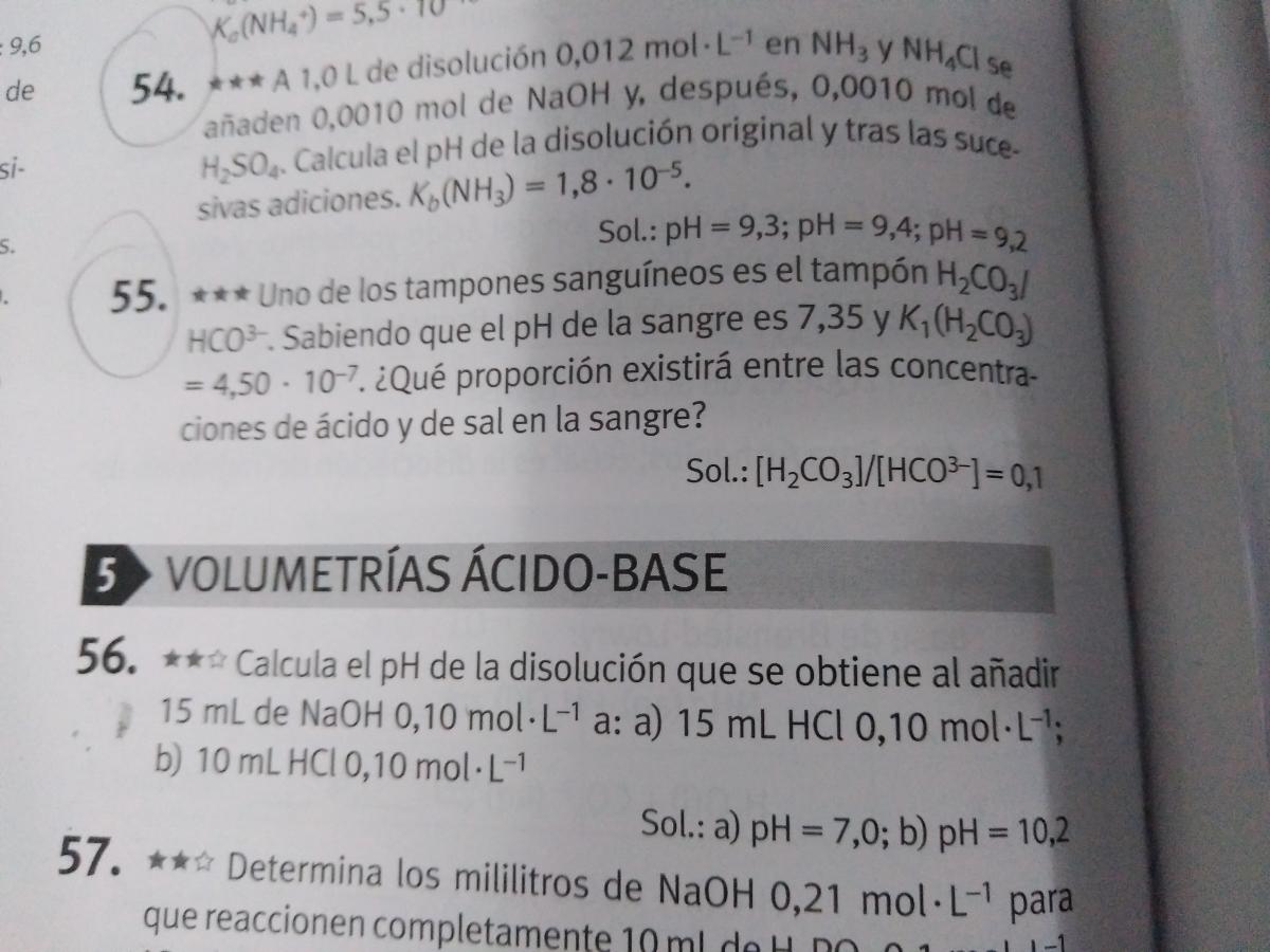 b) pOH=4,7 +log (0,012 -0,001) /(0,012+0,001) =4,6                  pH=9,4