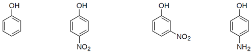 1.3 Teniendo en cuenta las propiedades de ácidez del fenol. Determine el orden de acidez de los siguientes compuestos fenólicos sustituidos. (1 será el más ácido). Escriba el número en el recuadRO