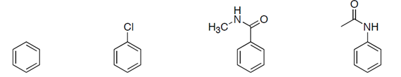1.2 Determine el orden de reactividad de los siguientes compuestos en una reacción de sustitución electrófila aromática. (1 será el más reactivo). Escriba el número en el recuadro.