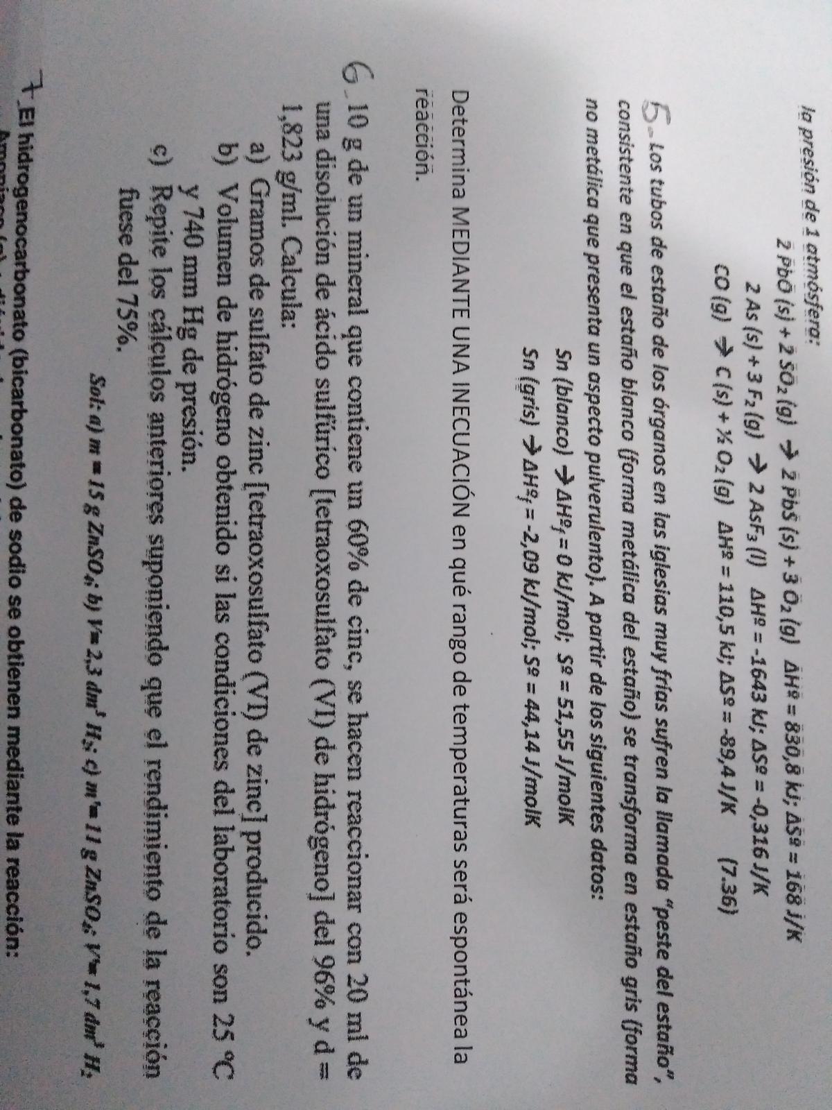 b)El volumen de la disolución de ácido sulfúrico necesario para que reaccione todo el zinc. Que a mi me a dado 10,6 mL, cuando el resultado debería ser 12,5mL.