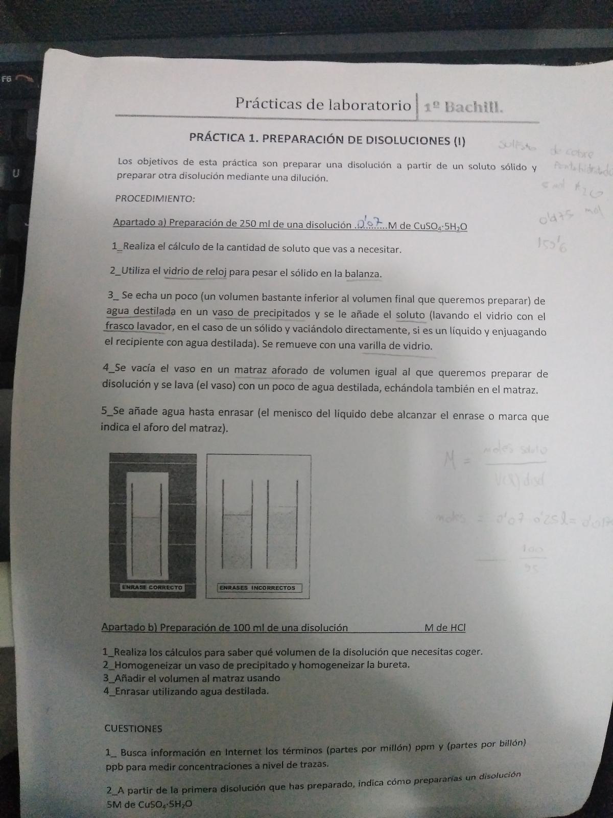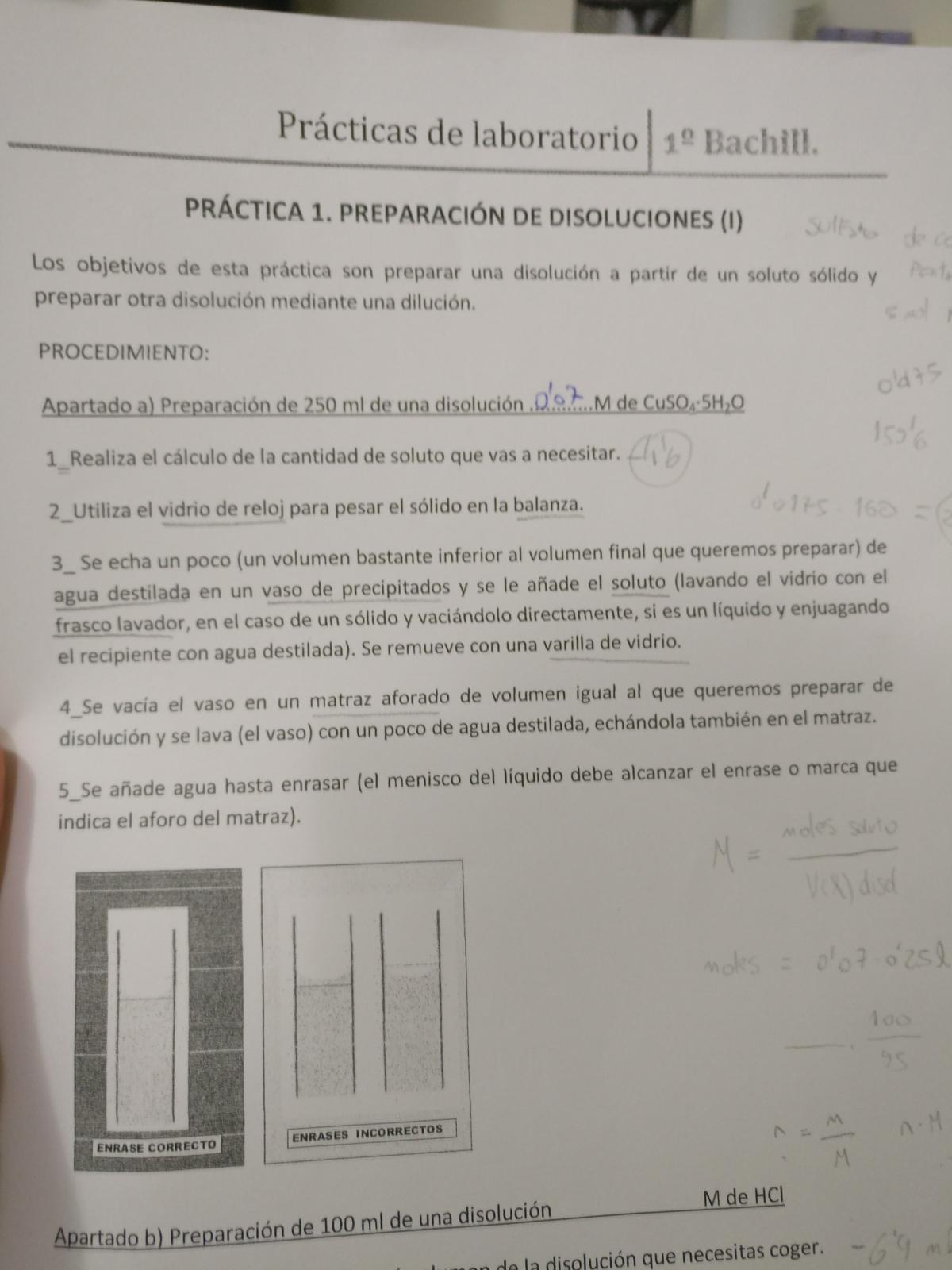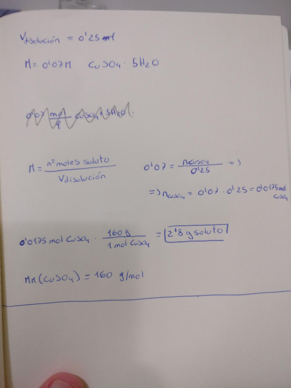 ¿Como cálculo la cantidad de soluto de una disolución, sabiendo la molaridad y el volumen?