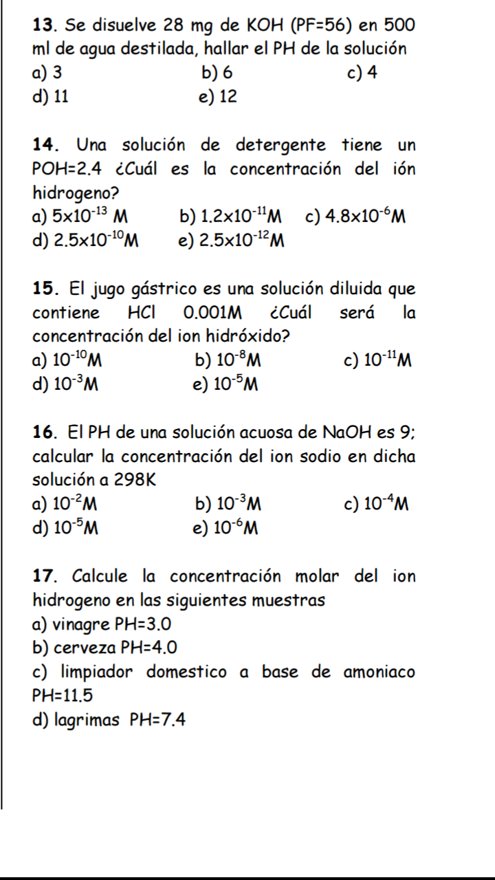 En este ejercicio tienes que aplicar la fórmula de la molaridad. M=nºmoles del soluto/Volumen de la disolución (LITROS)