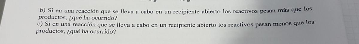 b) se me ocurre que al estar el recipiente abierto y pesar mas el reactivo...no conservara el total de su masa por oxidación....ni idea. Ayuda por favor con el b) y con el c)