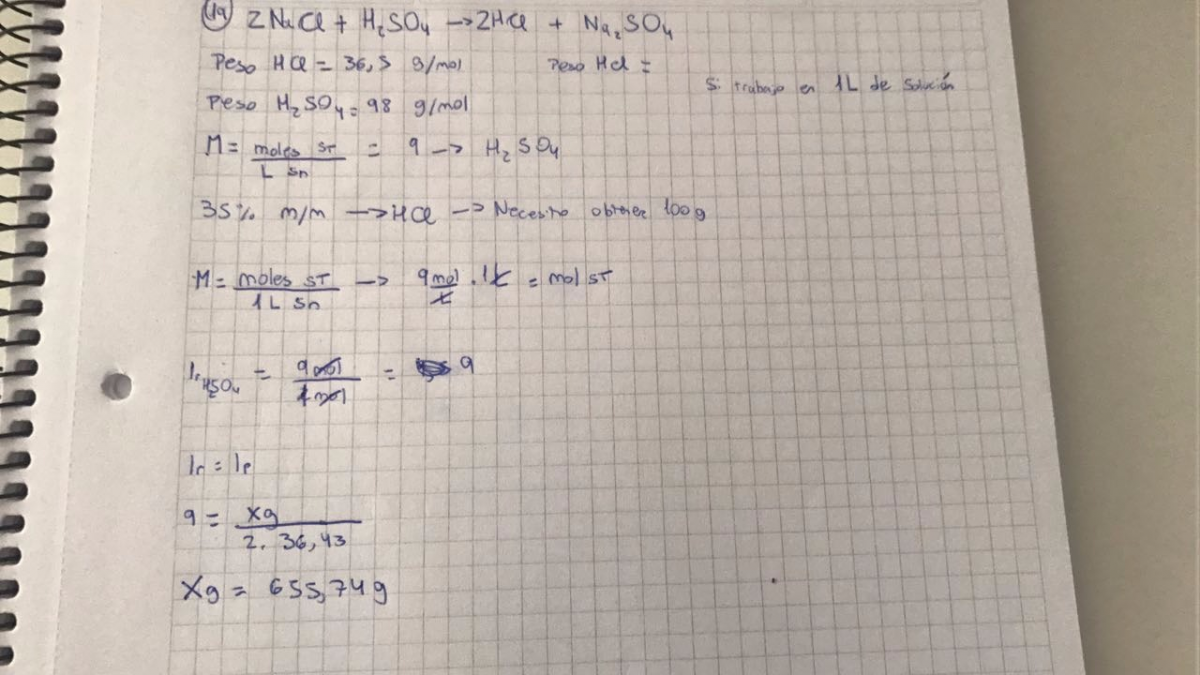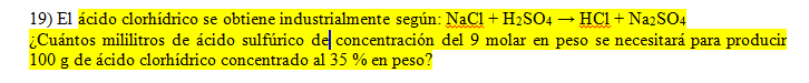 b) aunque consiguieras calcular el peso de disolución de H2SO4, no se puede calcular los mL porque faltaría la densidad.