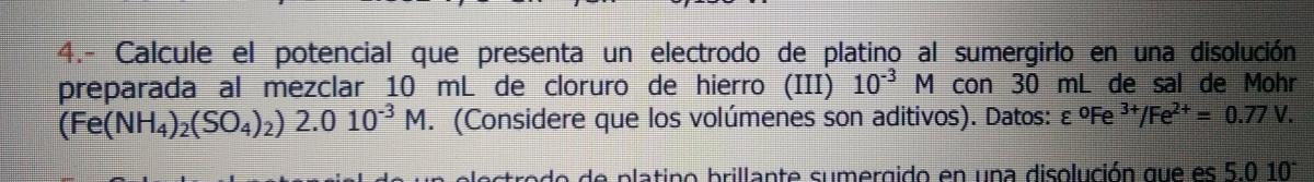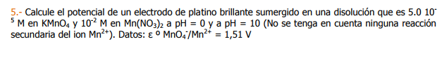 Sería un favor si podrían resolverlo, es con la ecuación de Nernst, gracias.