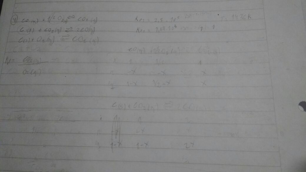 Contando con las siguientes constantes de equilibrio a 1476 K: