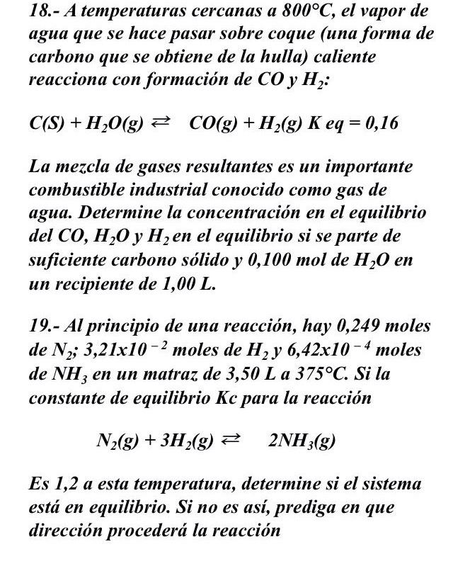 Una vez alcanzado el equilibrio a 27º C, la presión total es de 3,75 atm. Calcular Kc y Kp. Rta: Kc = 1,3; Kp = 5,3x10-2