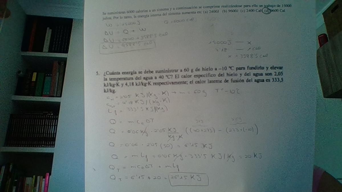 hola podrían corregirme estos dos ejercicios por favor, el tipo test y el ejercicio de abajo. por cierto en el ultimo ejercicio sirve de algo el calor especifico del agua para la formula? gracias