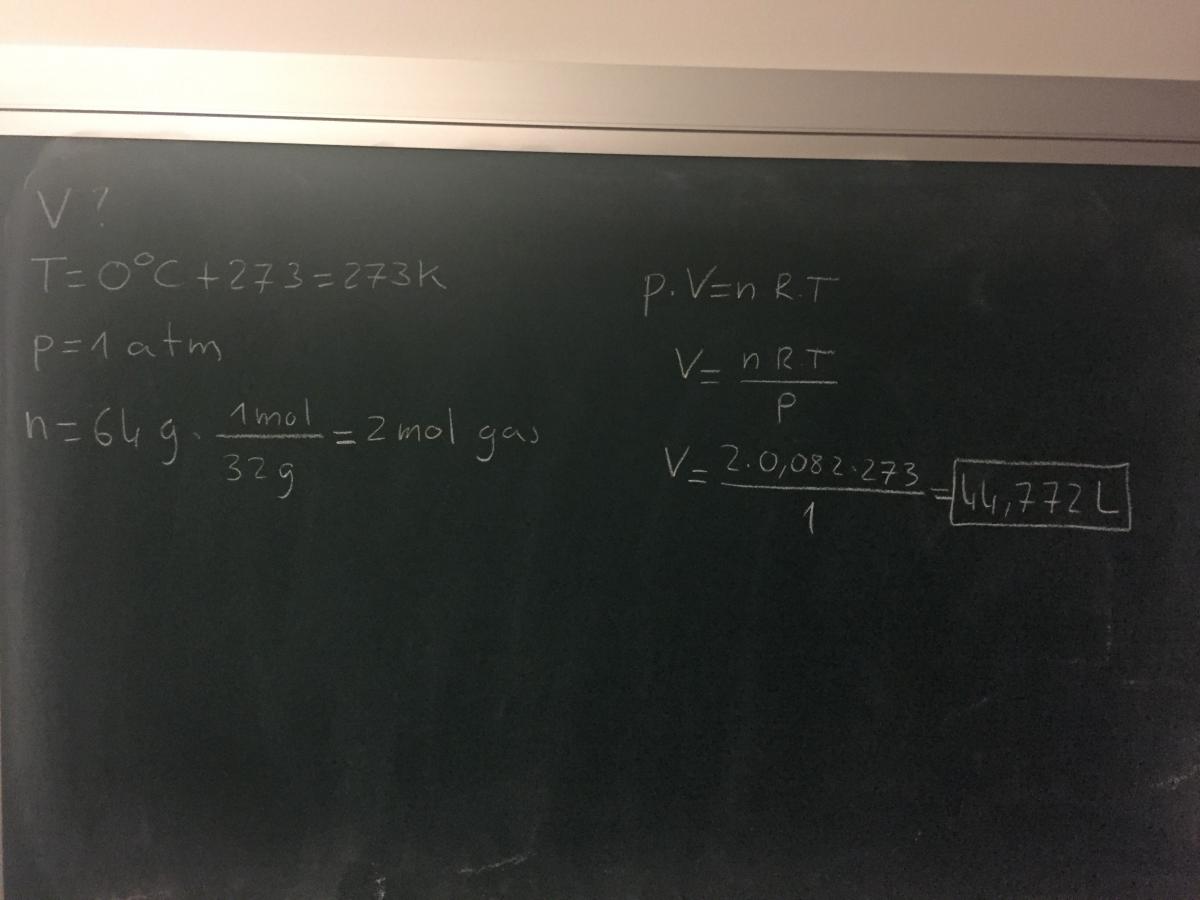 ¿Qué volumen, medido a 0ºC y 1 atm, ocuparán 64g de un gas cuya masa molar es 32g/mol?