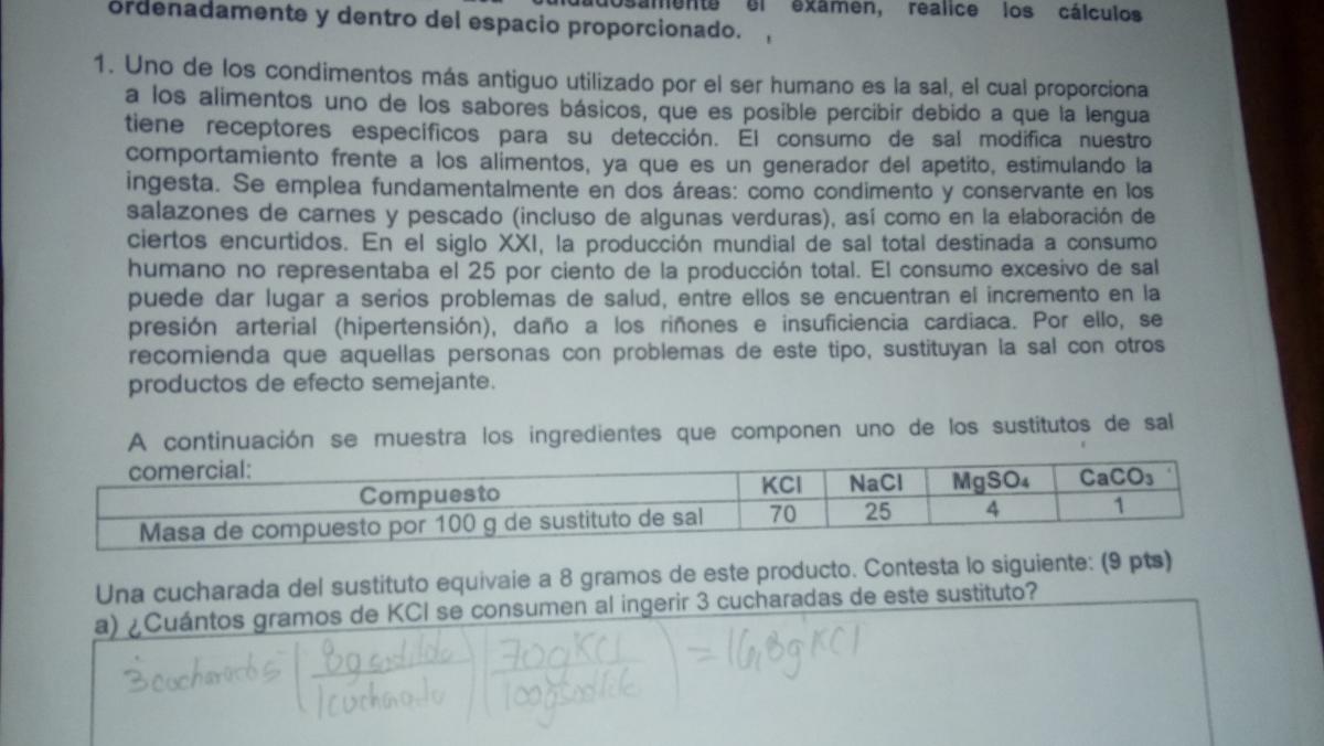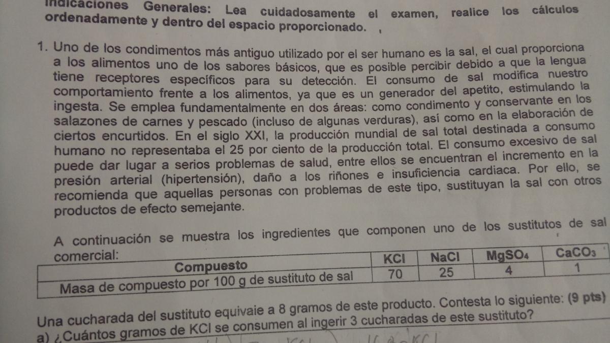 Datos: Masas molares: H = 1g/mol;Cl=35,5g/mol.