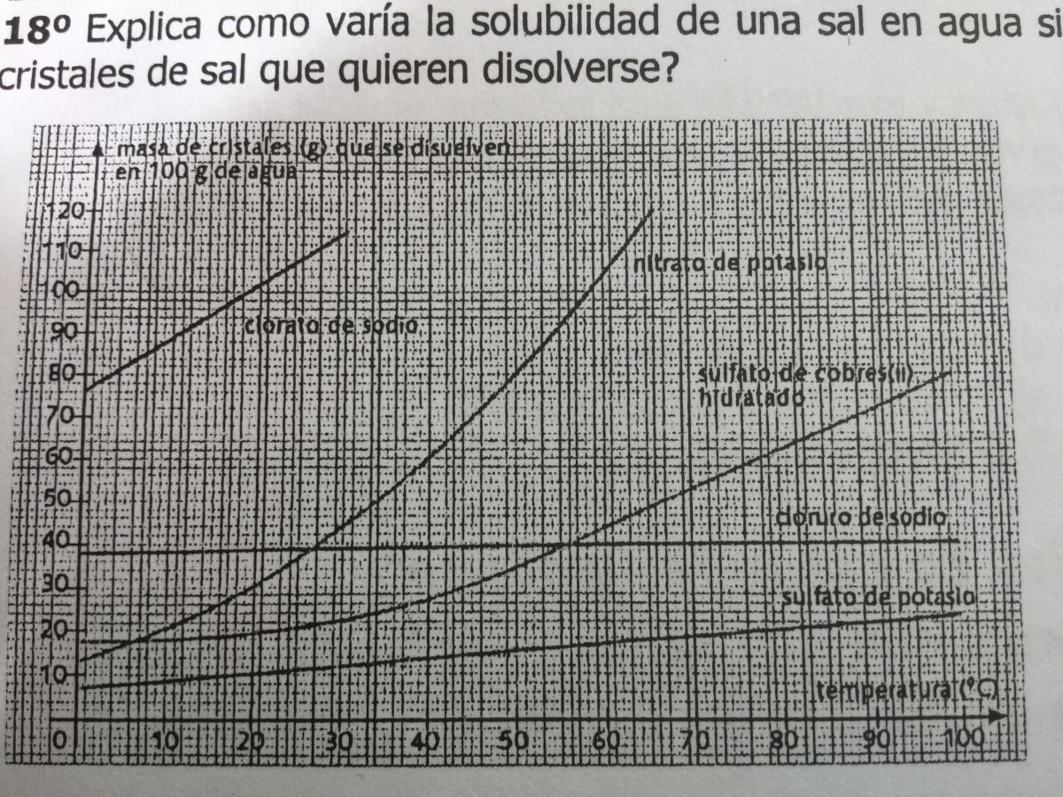 Hola Javi, como podemos observar en el gráfico, la solubilidad del NaCl es constante hasta una temperatura d 100ºC. Por lo que podemos deducir, 39g de cristales de cloruro de sodio se disuelven en 100g de agua, equivalentes a 100ml. Luego su solubilidad es de 39g por cada 100ml.