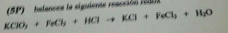KClO3+3(FeCl2)+6HCl->KCl+3FeCl2+3H2O