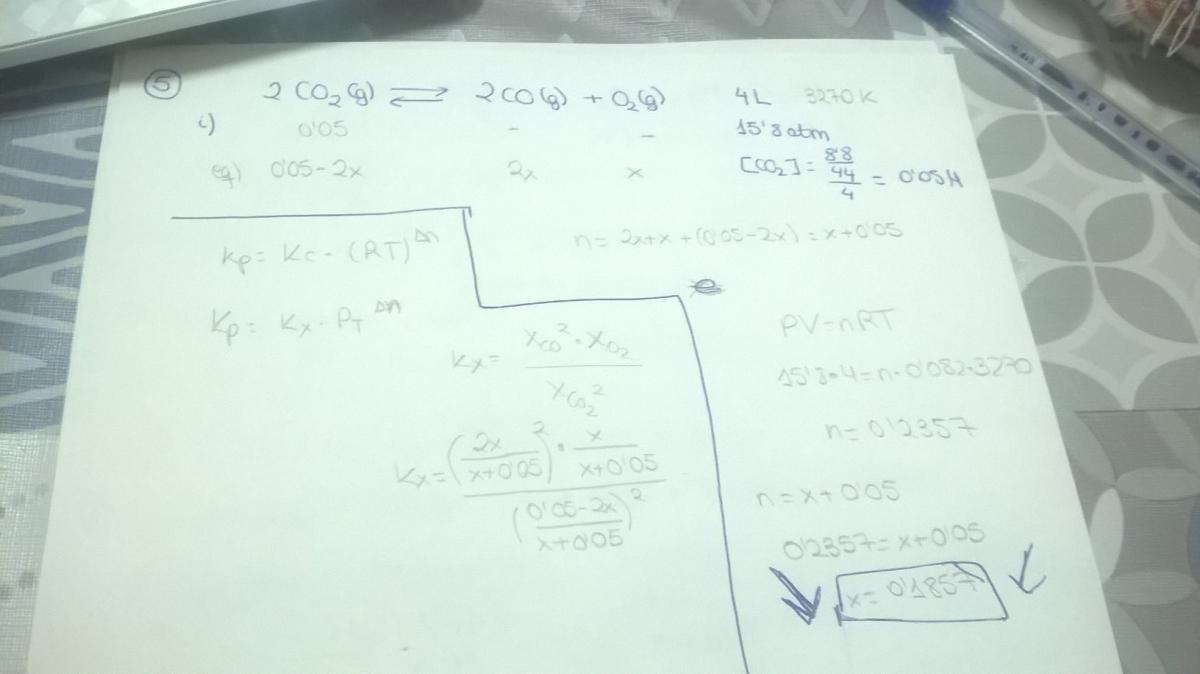 1. La constante Kp a dicha temperatura. Para calcular kp he partido de la formula kp=kxX presion total^Variaciónmolesgaseosos.