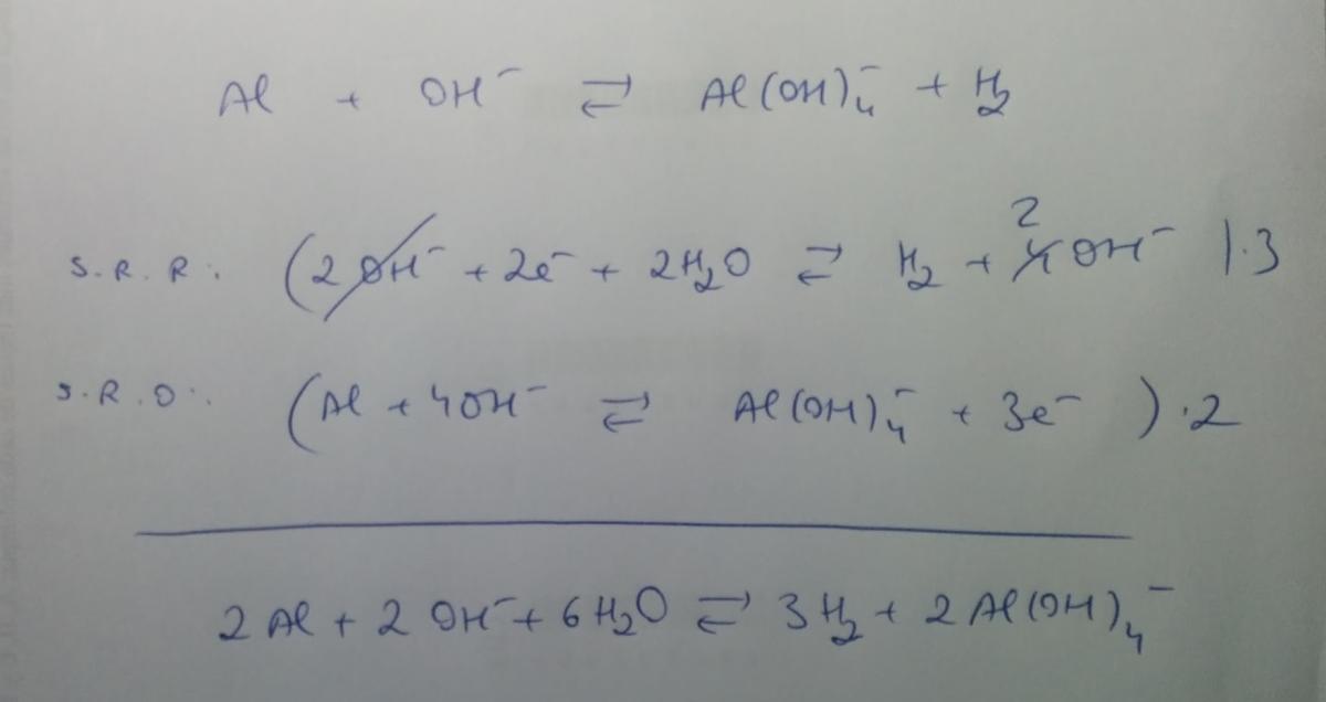 Balancea la siguiente ecuación química por el método de Ion-Electrón teniendo en cuenta que se encuentra en medio Básico: Al + OH- → Al(OH)-4 + H2