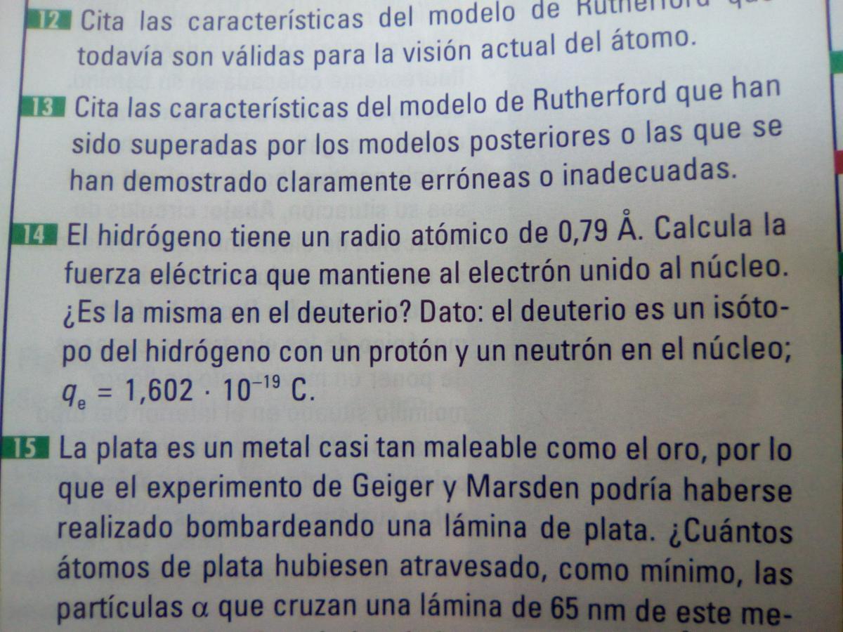 Hola!! Me pueden ayudar con el ejercicio 14😂. Yo creo que es la misma ya que misma cantidad de protones en el núcleo, así que misma fuerza.. Gracias!!!![]()