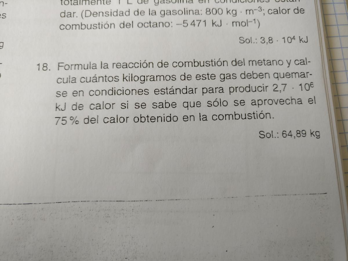 Haciendo una regla de 3, sabrás los moles de metano que se han consumido, dividiendo los 2,7.10^6 KJ entre la entalpia obtenida..