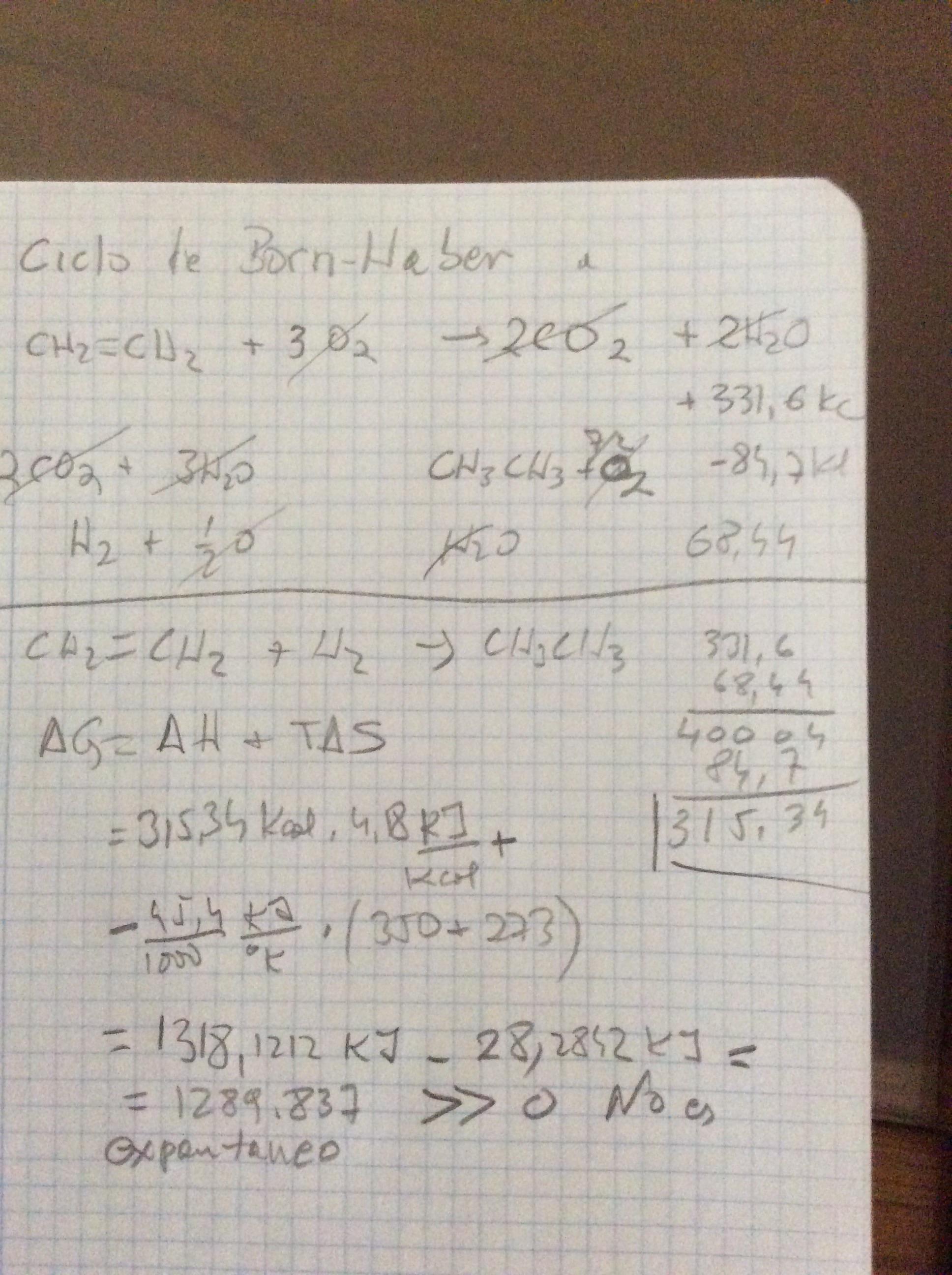 Y si la reacción se produce a 350ºC, con que valor de ∆S = -45,4J/ºK ¿Será espontánea?