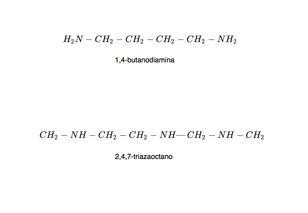 CH3-NH-CH2-NH-CH2-NH-CH3 es 2,4,6 triaza heptano (lo cuenta como carbono)