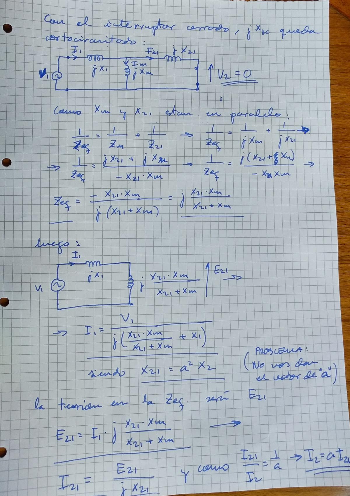 La resolución del problema pasa por plantear el circuito equivalente que nos dan, como no puedo hacerlo aquí, lo hago en papel y te pongo las fotos abajo.