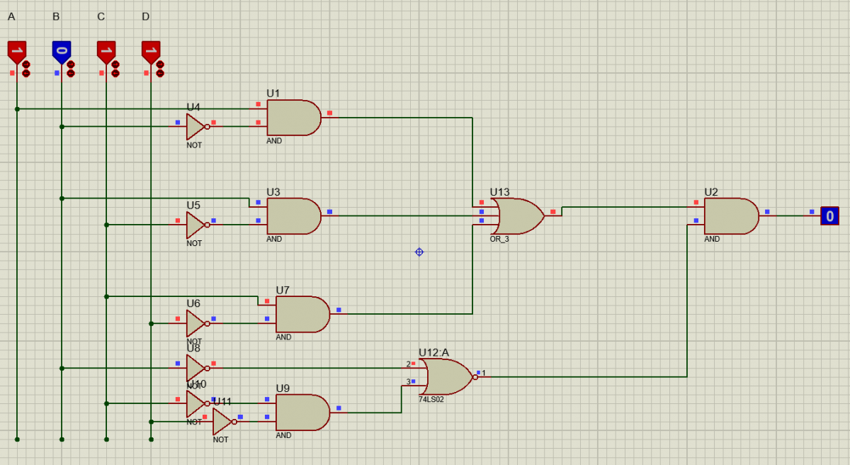 Hola de nuevo. Otra vez tengo problemas simplificando las expresiones lógicas. He diseñado el circuito a partir de la expresión y luego obtuve la tabla de la verdad y una vez más el problema viene cuando compruebo los resultados de la tabla con la simulación en proteus y me salen distintos. A los expertos en el asunto, ¿Donde me estoy equivocando? Un saludo.![]()